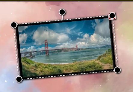 In the film view, you can grab the handles to resize or rotate the element. You can also move the element by dragging it from the center.