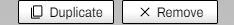 At the bottom of the options panel, you will find buttons to delete and duplicate the element. You can also use the CTRL+C, CTRL+V, and Delete keys.