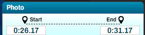 The settings for an element include a start and end indication for the element; you can manually edit the time by clicking in the box.