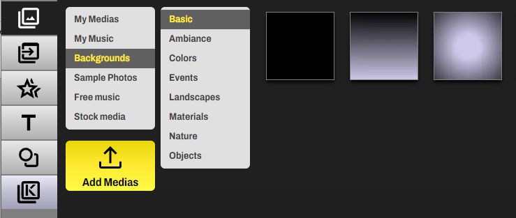 You can also insert a background. For a black background, it can be found in the 'Basic' category of backgrounds in the media library.