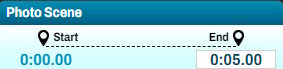 At the top of the options panel, the start time and end time in the film are indicated. You can click on either of these times to manually edit and enter an exact time.