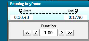 You can move the marker to change the start time of the framing, and you can change the duration in the options panel that opens on the right when the framing banner is selected.
