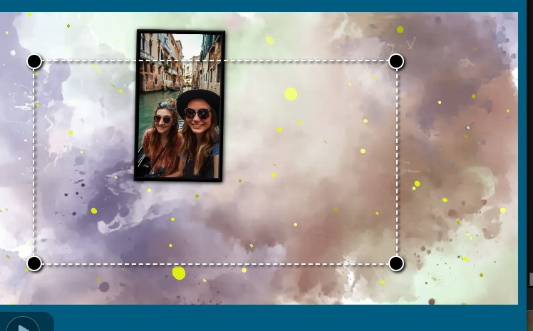 When you double-click on a scene, or click the small pencil icon in the top right corner of a scene, or drop a photo or video at the bottom of the scene (where it says 'Add'), you open the scene or slide editing tool.