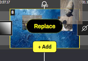 To add an element to the scene outside the scene editor, you need to drop the photo or video where it says 'Add', at the bottom of each scene when you hover over it.