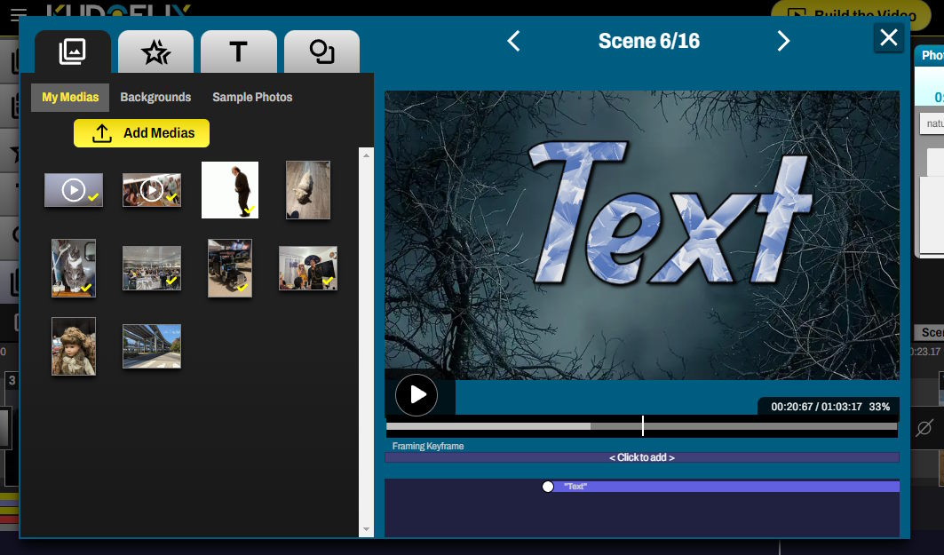 You can drag photos, videos, clips, and texts from the left side and drop them directly into the film view on the right to create your composition or collage.