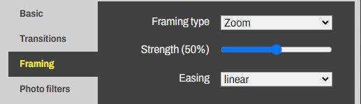 * Framing type: defines whether the background will zoom in or out, whether it is centered or off-center.