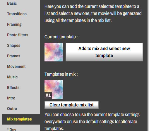 Allows you to add the selected template to a list; you can then open another template and also add it. The generated film will take into account all the selected ambiances.