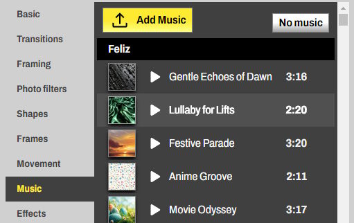 You can also add your own music with the yellow 'Add Music' button located at the top.