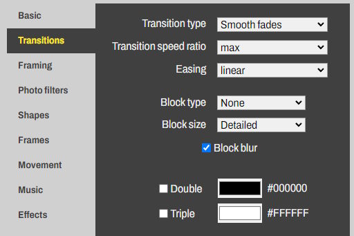 * Transition type: allows you to choose a category of transition to apply randomly in the template.