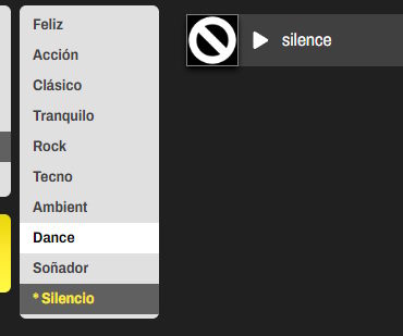 La última categoría 'Silencio' contiene una pista vacía que permite agregar un espacio en blanco si lo necesitas.
