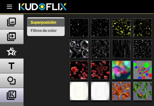 * Los efectos de tipo superposición son elementos animados completamente configurables que se aplican a tus escenas.