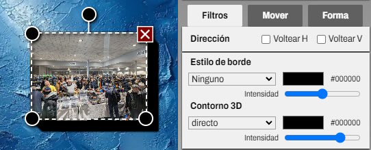 La configuración de Dirección está disponible únicamente para elementos de tipo foto, vídeos, clipart o gif. Permite realizar una simetría vertical u horizontal del elemento.
