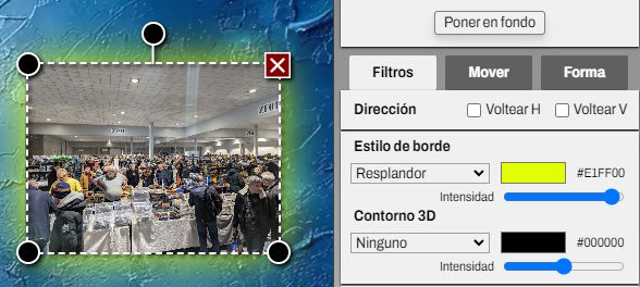 Permite añadir una sombra, un halo o un contorno a un elemento; también eliges el color y la intensidad.