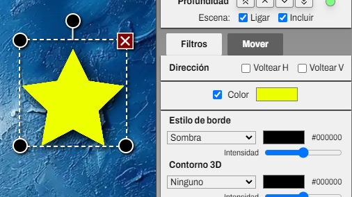 Permite añadir volumen o una sombra proyectada a un elemento, con el color y la intensidad. Puede combinarse con el filtro de borde.