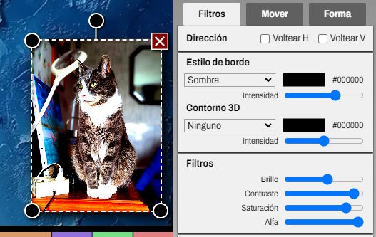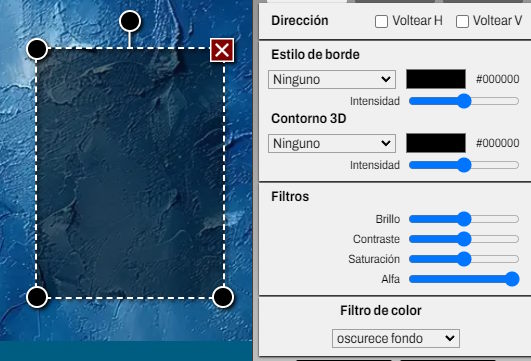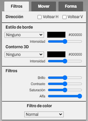 Puedes ajustar el brillo, el contraste y la saturación. La opacidad cambia la transparencia del elemento.