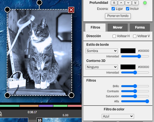 Puedes aplicar un filtro de color clásico (por ejemplo, convertir tu elemento de vídeo en blanco y negro o colorizarlo de azul), o puedes tener filtros que modifican el fondo.