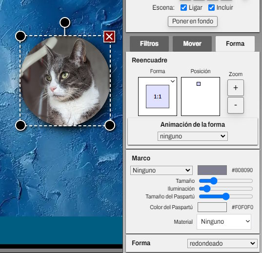 El selector de posición permite mover la foto o el video dentro de la forma.