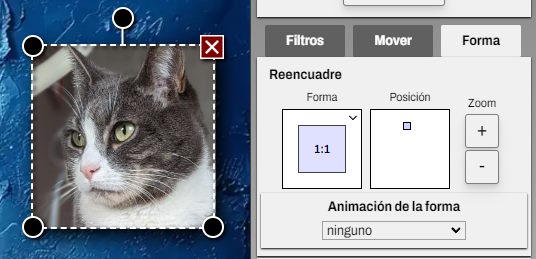 Puedes, por ejemplo, cambiar un elemento a forma cuadrada abriendo el selector bajo la palabra 'Forma' y seleccionando la relación 1:1.