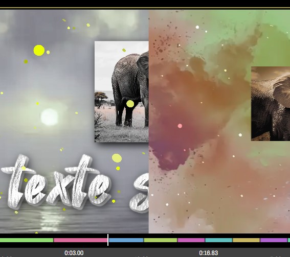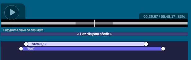 * Si los colocas en la zona que se encuentra debajo de las escenas, tienen un posicionamiento libre. Esto significa que estos elementos están por encima de todo y pueden superponerse a varias escenas; no están afectados por las transiciones. Estos elementos no seguirán las diapositivas cuando modifiques la película.