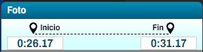 La configuración de un elemento incluye una indicación de inicio y fin del elemento, puedes editar manualmente el tiempo haciendo clic en la casilla.