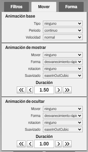 La animación de salida, cuando el objeto va a desaparecer, se configura de la misma manera.
