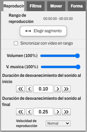 Es decir, la definición del segmento que se reproducirá, la sincronización y la gestión de los volúmenes sonoros y de las transiciones.