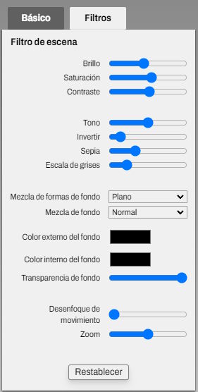 Un botón de Restablecer permite devolver toda la configuración de los filtros a su valor por defecto.