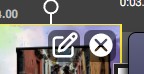 En la esquina superior derecha de cada escena, tienes un botón para entrar en el editor de escenas, y luego un botón para eliminarla.