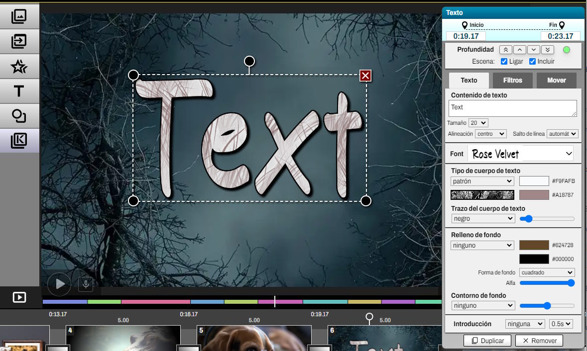 Para añadir un texto, simplemente arrastra la plantilla de texto y suéltala en una escena.