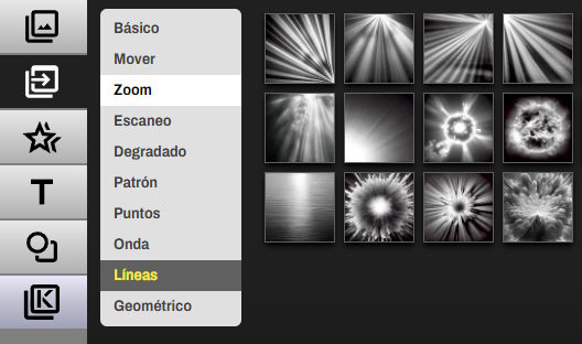 Muchas transiciones están disponibles y están clasificadas por categoría.