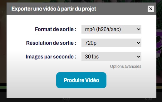 À tout moment, vous pouvez générer un fichier vidéo à partir de votre projet.