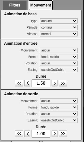 L'animation de sortie, quand l'objet va disparaître, se paramètre de la même façon.